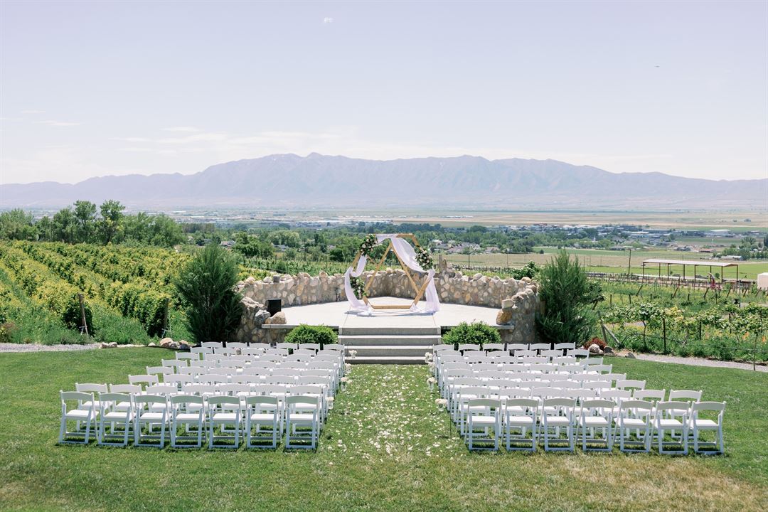 Our breathtaking grounds and handcrafted elegance make a picturesque destination for your wedding. With a backdrop of the Wellsville mountains, the amphitheater is the idyllic place to start your forever together.