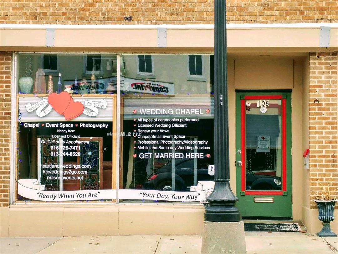 We are a mobile wedding officiant service performing ceremonies for $125.00 and up or simple signing of your license for 125.00 at our chapel since 1991. Serving All of Missouri and Kansas. Please call us for a quote. We'd love to hear more about your special day! Pastor Nancy.