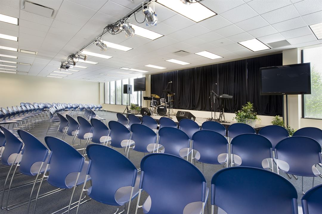 Large Conference Room-Auditorium seating with stage (75-120 people): $305/day