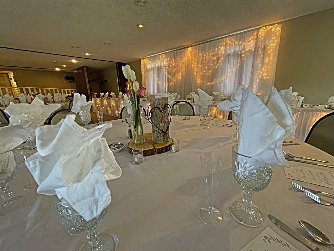 Our banquet room can seat up to 130 people. For smaller meetings or parties, we are able to close off portions of the room to create a more intimate setting.