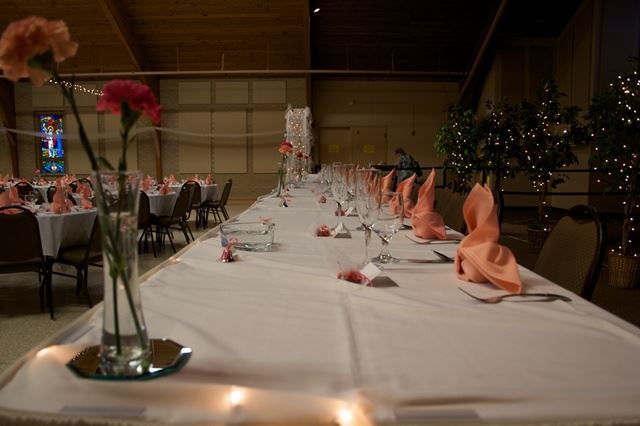 Shamrock Hall is a great space to host your wedding reception or banquet. The hall has a seating capacity of 350. This area is ideal for dances, banquets, wedding receptions and other large events. The area has a sound system that can be used to serve your corporate meeting needs. On the west end of the hall is a full-service kitchen with two gas ovens, a eight burner stove, two convection ovens, warming ovens, an ice machine, refrigerators, freezers, dishwashers and a cleanup area with garbage disposals. The kitchen has windows that allow for a food serving line. We can supply you with a list of approved caterers. Liquor can be served by renters to invited guests provided it is an open bar and served by the St Patrick's Men’s Club.
