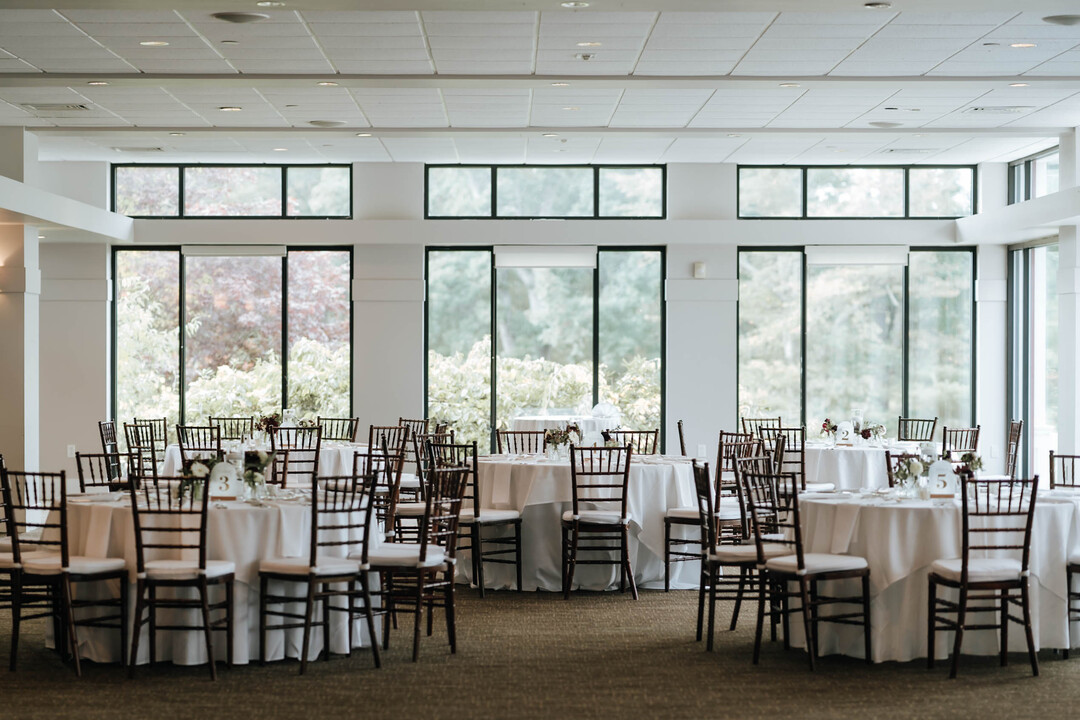 Our Ipswich Ballroom accommodates up to 200–250 guests, offering an open, elegant layout and a spacious terrace that provides a beautiful setting for cocktail hours or simply taking in panoramic views of the golf course. For more intimate gatherings of up to 70 guests, the Crane Room offers a warm, sophisticated atmosphere with its own terrace and beautiful course views, providing the perfect setting for rehearsal dinners, showers, luncheons, business meetings, or a post-wedding brunch.