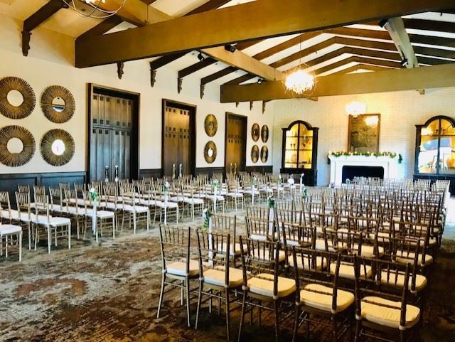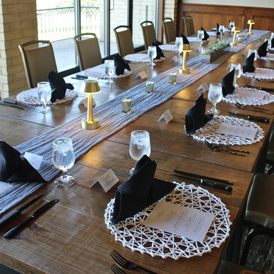The Las Colinas Colinas Country Club staff let us bring in some decorations. We brought some large flower vases and tablecloth covers to further decorate the tables and the fireplace. They also upgraded us to the ballroom at no charge, since we had quite a few guests. Since the ballroom was already set up and nicely decorated, it made a grand impression on our guests. All the guests loved the venue, especially the landscaping and the grounds. The daytime pictures from the golf course and the nighttime pictures in the ballroom came out lovely!