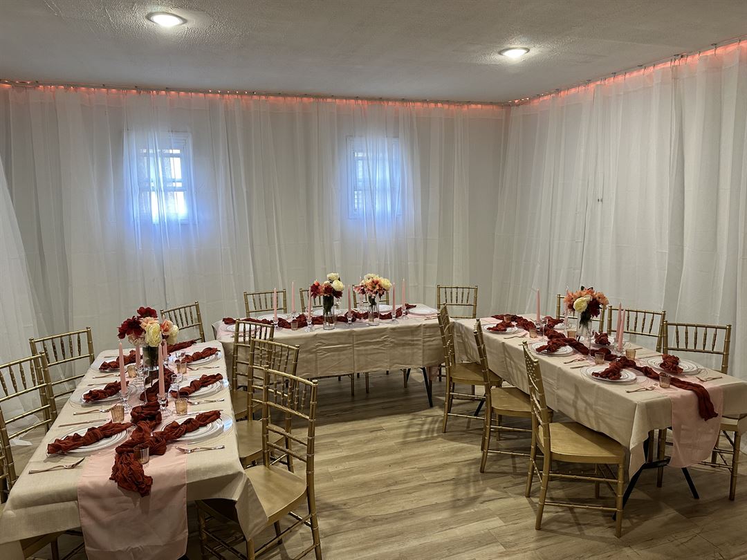 An intimate and luxurious event space designed to host your most memorable gatherings. Perfect for small celebrations, private dinners, bridal showers, baby showers, and intimate cocktail parties, this versatile venue comfortably accommodates up to 30 guests, ensuring an exclusive and personalized experience.