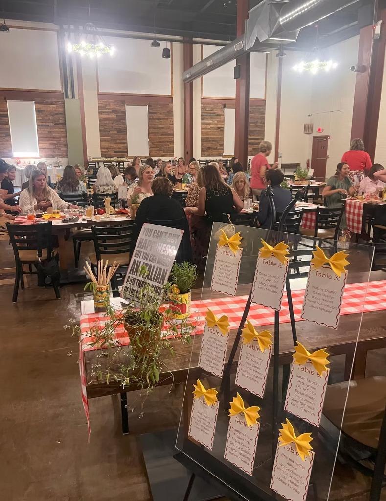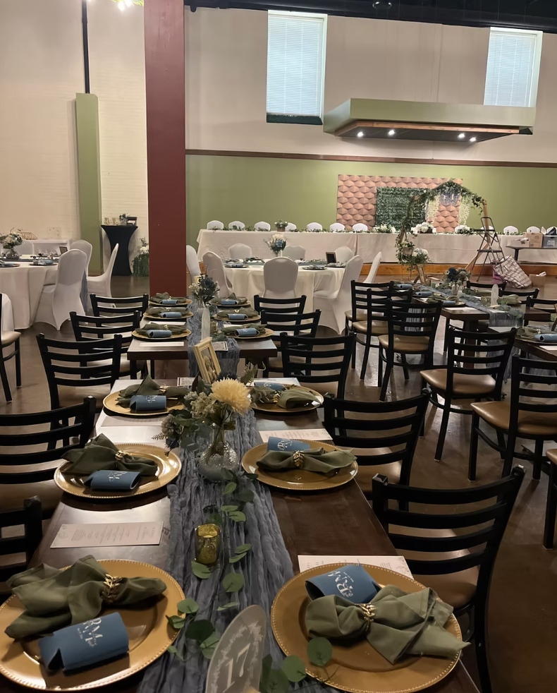 Our venue has seating for up to 100 guests. We have a platform stage for your band, DJ, or wedding party seating, a spacious dance floor, three large projection screens, and a sound system.