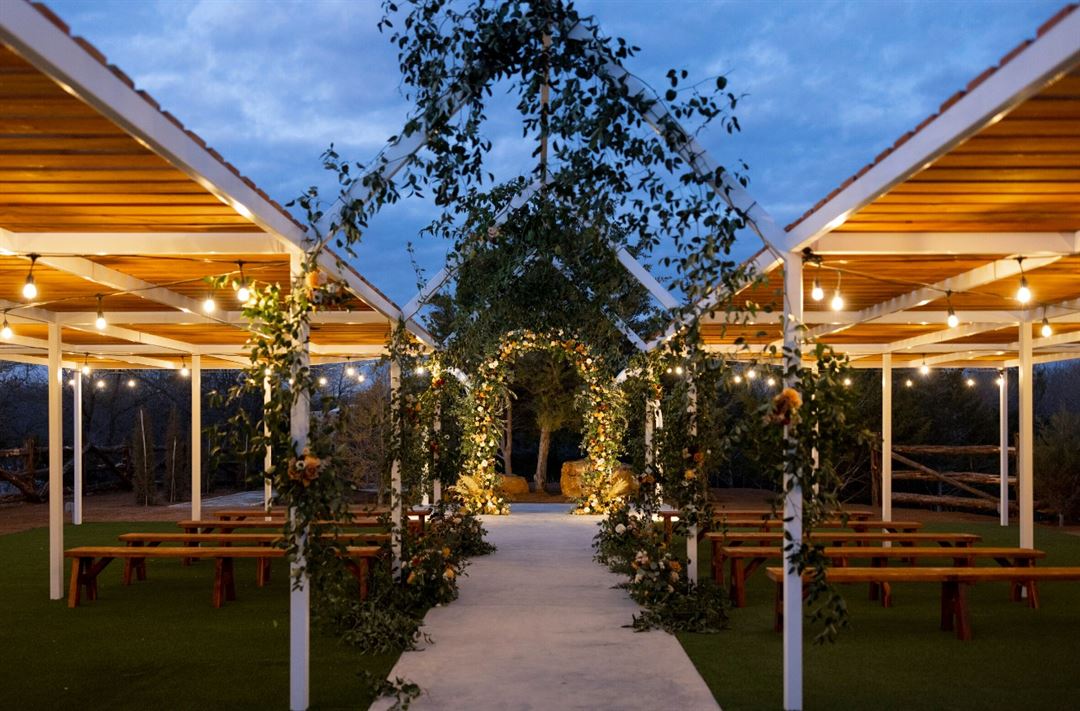 This boutique wedding venue boasts a lovely chapel with the perfect combination of Texas charm and elegant accents. Stained glass windows and crystal chandeliers combine with hand-hewn cedar walls to create the perfect setting for exchanging your vows. The outdoor seating area will accommodate up to 160 guests. An impressive fountain alongside the seating area adds a natural romantic ambiance to the festivities.
