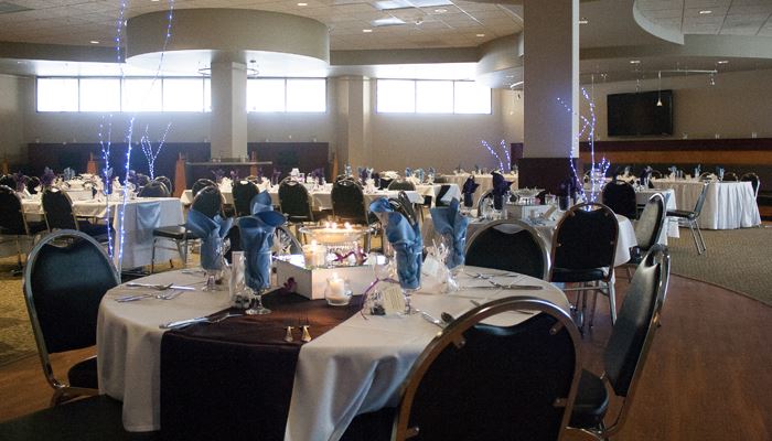 Located on the first floor of Potter Center, the newly remodeled Robert Snyder Dining Commons is an excellent facility for wedding receptions, banquets and other special events. Most events range from 200 to 275 individuals. The maximum capacity is 360. This allows for an area for dancing and a band or DJ. The Potter Center Patio may be reserved for an additional cost. Food service arrangements must be made through the catering service on campus, Continental Catering.