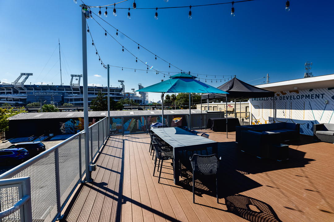Our versatile event venue is perfect for corporate events, private parties, weddings, and community gatherings. Located steps from the Jaguars stadium, it offers both indoor and outdoor spaces designed to accommodate a variety of events.