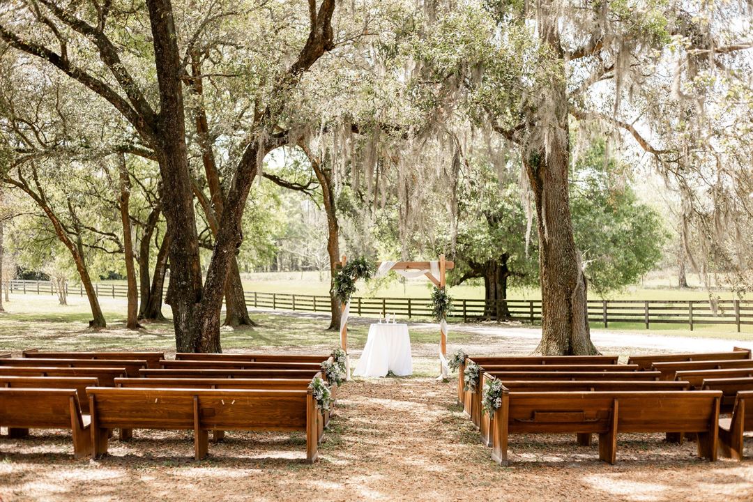 With over 100 acres of open pastures and beautiful live oak trees, we know that we will have the perfect setting for you on your wedding day! We not only deliver a beautiful outdoor wedding venue but include many of the pieces to make your day amazing without charging you extra!