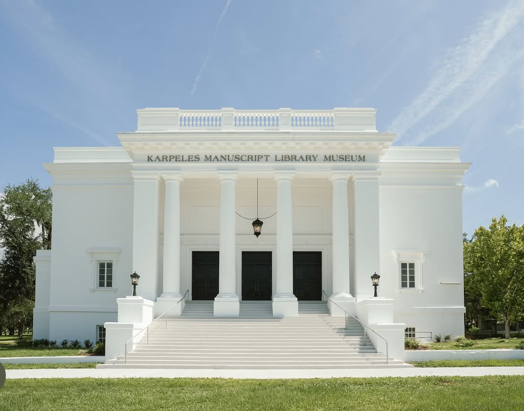 Built in a Classical Revival style, the facade is highlighted by four monumental Doric columns, and was originally built in 1921 for the First Church of Christ Scientist. It was designed by Marsh & Saxelbye and built by W.D. Gerbich. In 1992 the congregation sold the building to David Karpeles, and it served as one of fifteen Karpeles Museums around the country to display founder David Karpeles’ collection of rare documents and manuscripts. Karpeles, a mathematician, inventor, and real estate investor, passed away in 2022, leaving his family to process the collection.