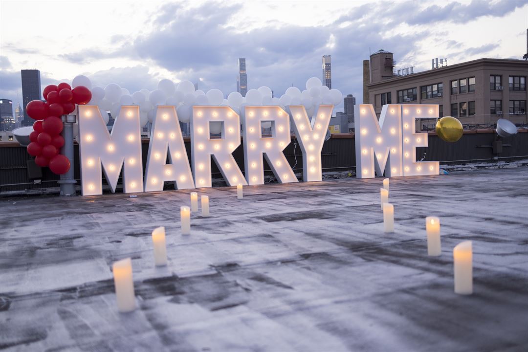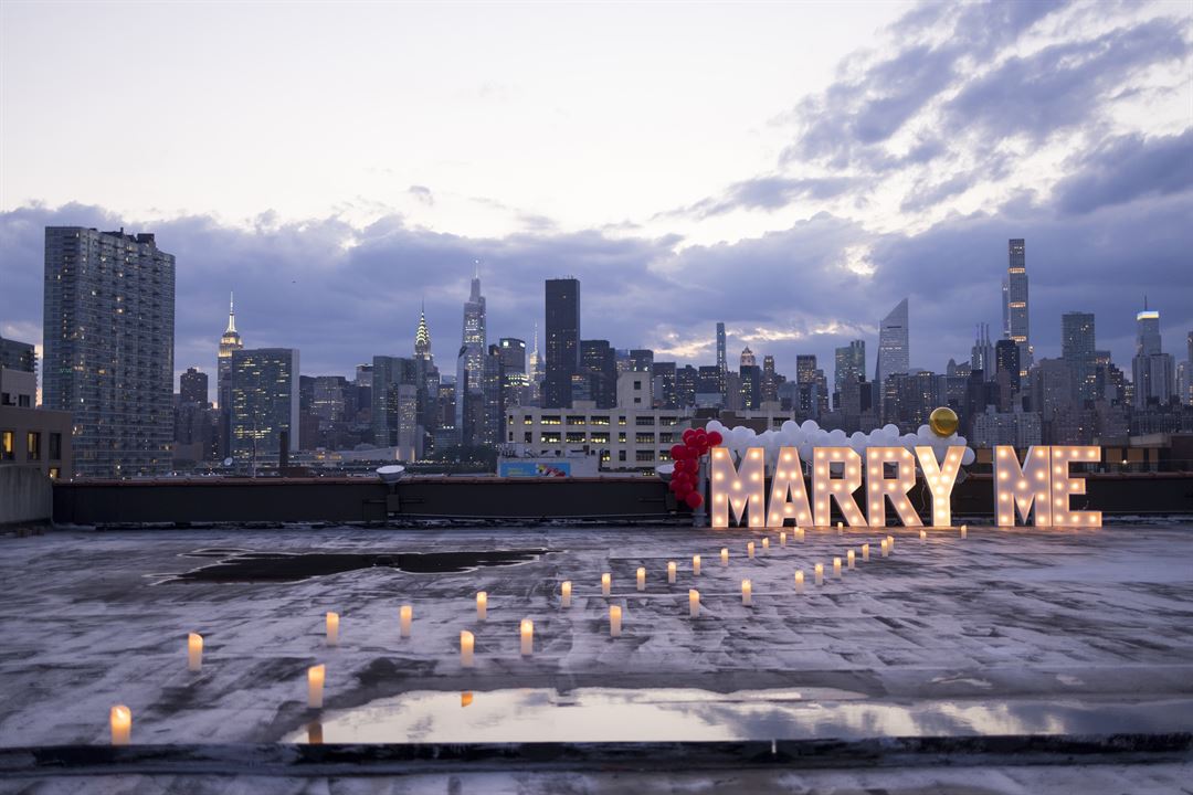 Introducing our stunning rooftop PROPOSAL event space, a breathtaking oasis nestled amidst the iconic New York City skyline. Perched atop one of the city's finest buildings, our venue offers unparalleled views of New York City's Skyline.