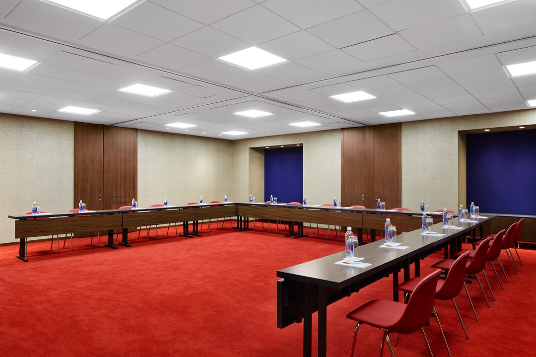 Architect Eero Saarinen's landmark 1962 Trans World Airlines terminal is the heart of the 512-room TWA Hotel, the only on-airport hotel at JFK Airport. The property — directly connected to JetBlue’s Terminal 5 — boasts 50,000 square feet of midcentury modern-inspired event space, plus outdoor terraces, a rooftop pool and an observation deck. Perfect for small and large gatherings, the 45 event rooms and five hospitality suites can host up to 85 people.