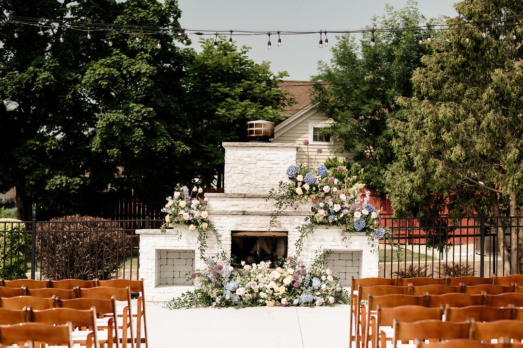 The Hearth Patio can seat up to 375 guests for outdoor ceremonies and features a beautiful old world stone fireplace.