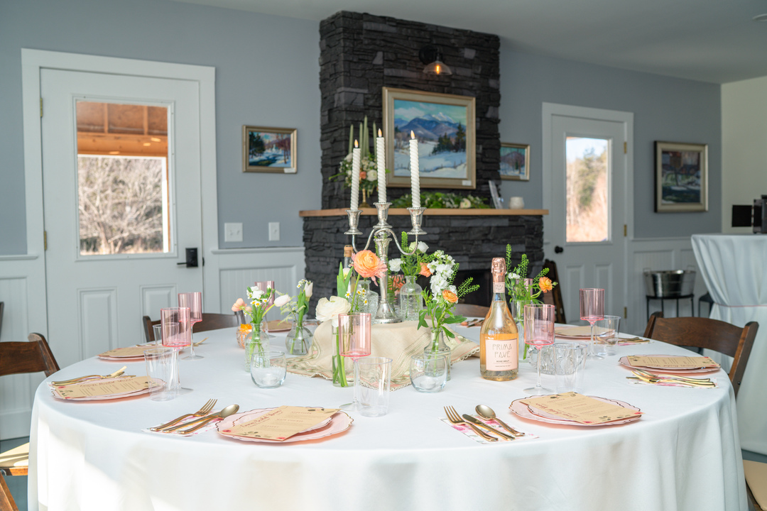 Our heated/cooled, indoor space with fireplace is ideal for events of up to 50 people.