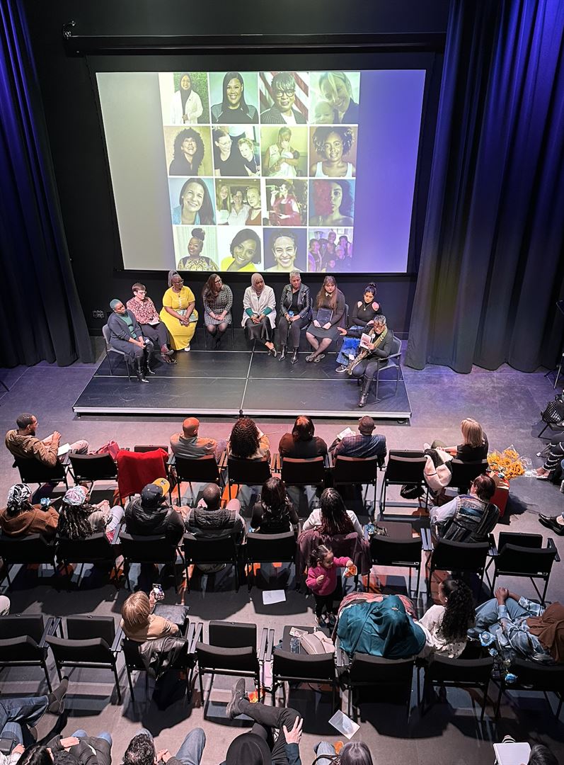 Our two-story, state-of-the-art new home, designed by nationally recognized theater architects Auerbach Consultants, consists of a theater, a visual arts gallery, dressing rooms, a lobby, and office space in an adaptable-use facility. Our flexible theater has up to 97 seats (110 for a comedy configuration) and can be cleared to be used as an event venue for 200. Our lobby and gallery can hold up to 125.