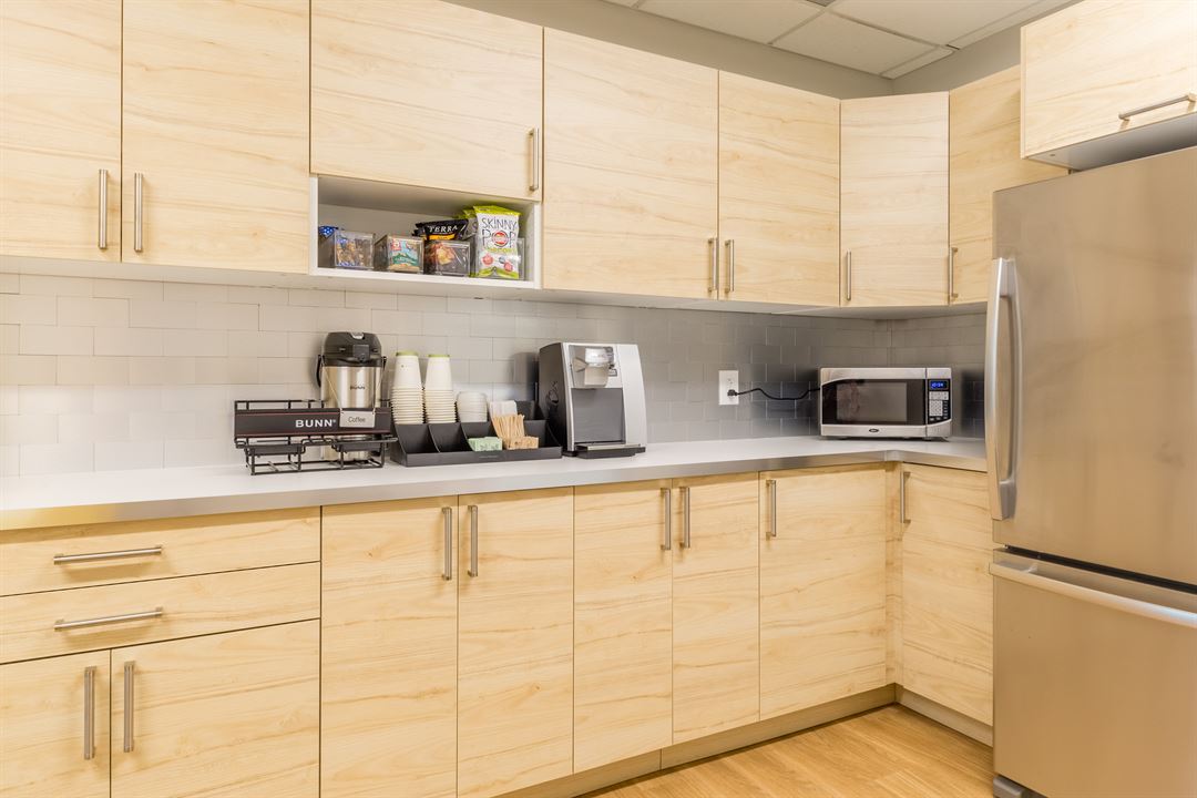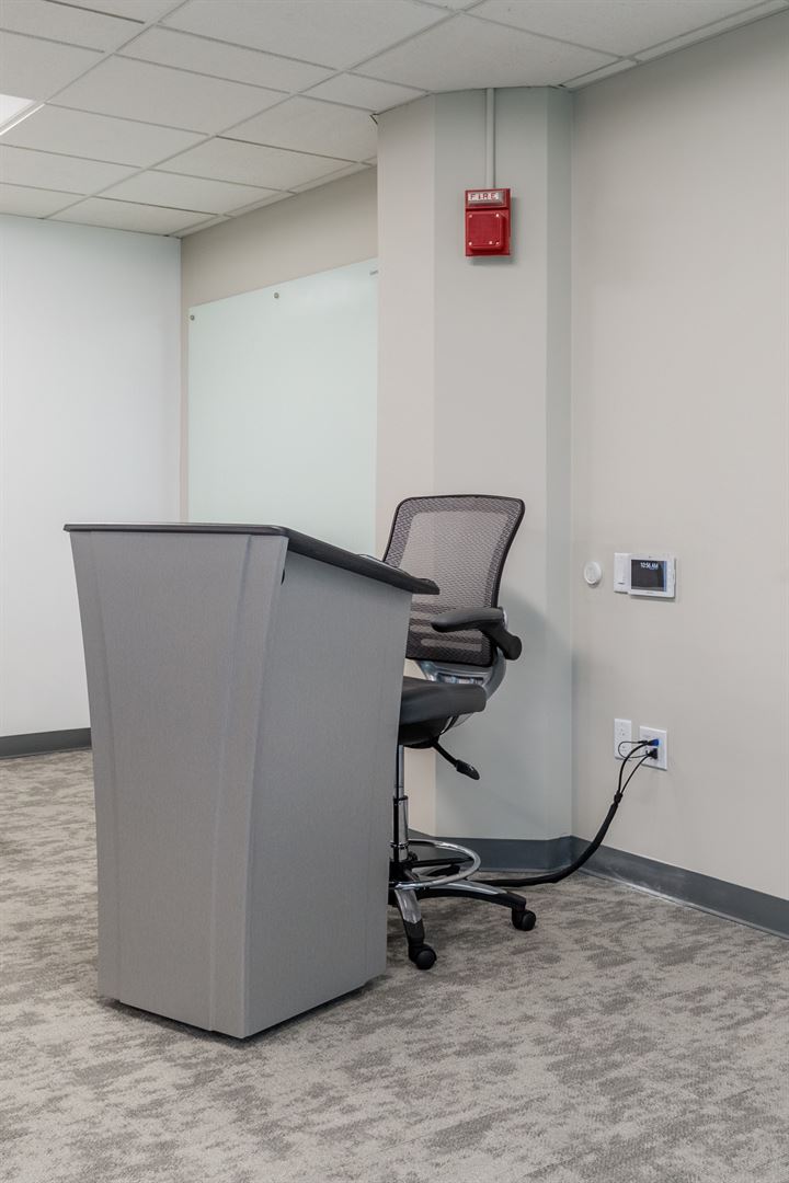 Our Training Room has 3 monitors, a full kitchen, a cork wall, and a podium. This is 1,000 sq.ft. of space for work, creative, and manufacturing purposes.