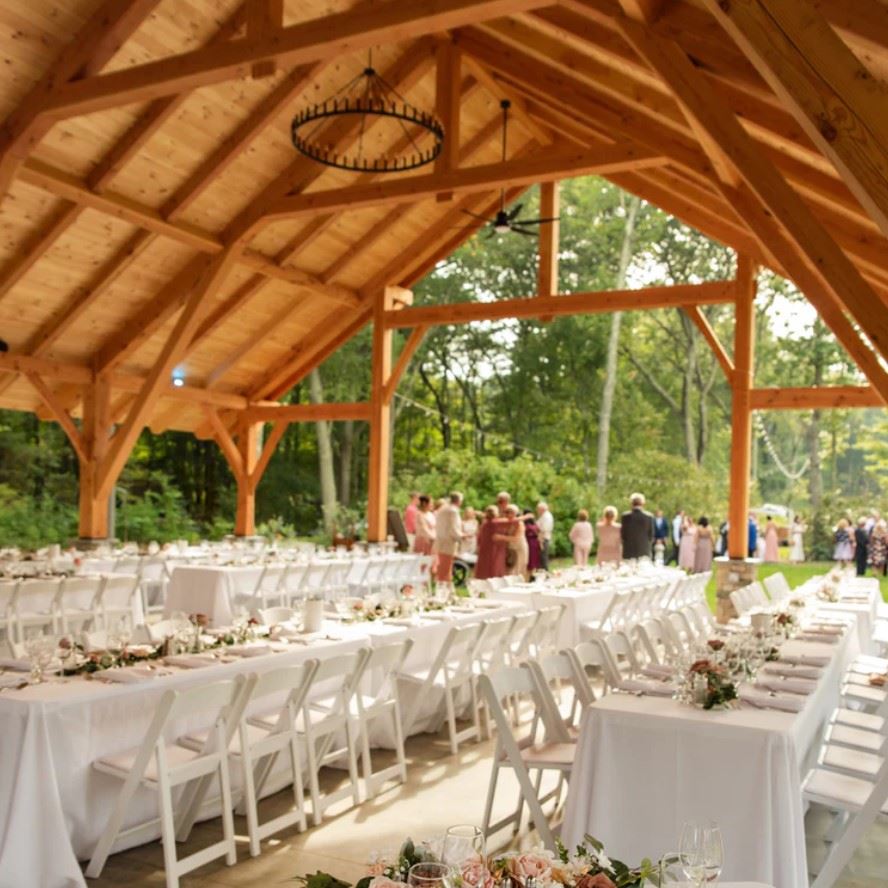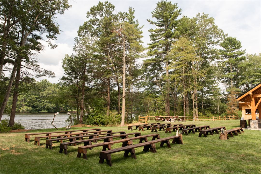 Pachaug Cottages provides a beautiful lakeside setting for wedding & events. The outdoor dedicated venue area features a new 40x60 ft heavy timber frame pavilion, separate bar building and caterer tent.
