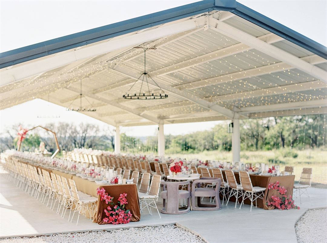 Mae’s Ridge is more than a venue…It’s an Experience. Perched upon a ridge is a chic, modern white barn overlooking our 28 acres with incredible Hill Country Views. The interior, with its white ship lap walls and ceiling, are a crisp and sophisticated backdrop for any event creation dreamed possible. The climate controlled barn is alive with nature and light brought in with the six grand glass doors and skylights above making it perfect for any type of weather.