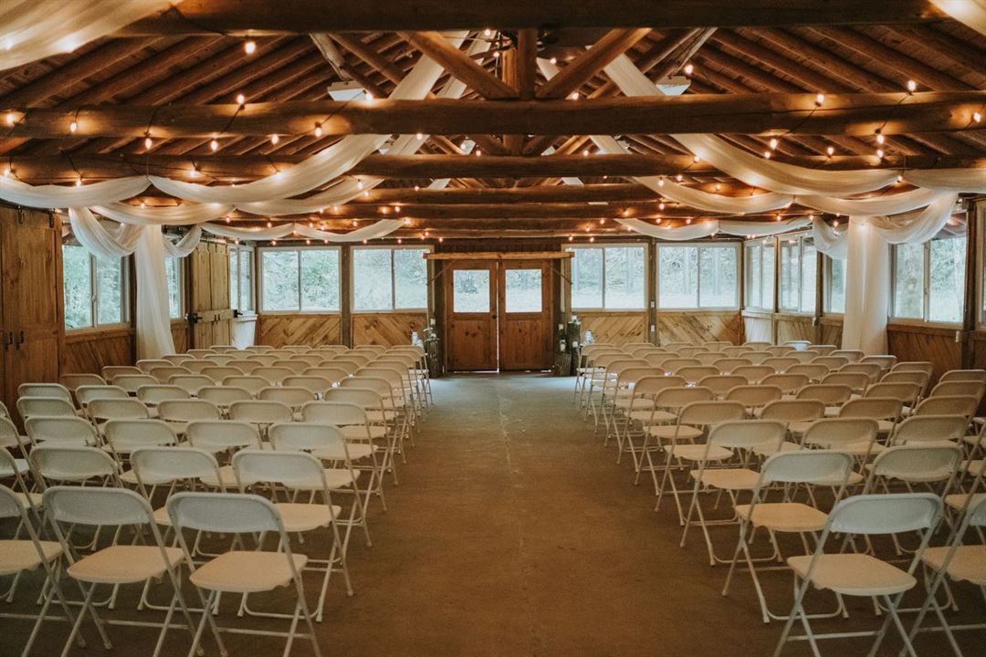 We are a small family-owned venue. Our 107-acre escape is the perfect mountain getaway for a small private ceremony or a large family affair. With our 17 bedroom retreat and our 5 bedrooms 3.5 bath house, we have enough room for your family and friends to stay on site. We have plenty of options to choose from, such as a ceremony beside the creek with a mountain laurel backdrop to our white cedar beam lodge with doors that open up to an inviting outdoor patio. Situated in a valley surrounded by mountains, the Camp is truly a beautiful place for whatever your occasion is