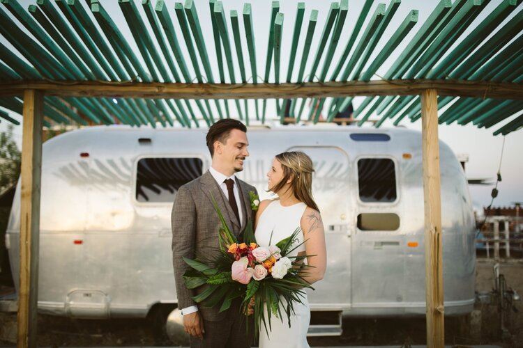 Surrounded by mountain ridges, desert landscape and the bursts of color throughout the property structures, Hicksville Trailer Palace offers the setting for one-of-a-kind weddings. Hicksville Trailer Palace provides a variety of activities throughout the property to add to the unforgettable experience.