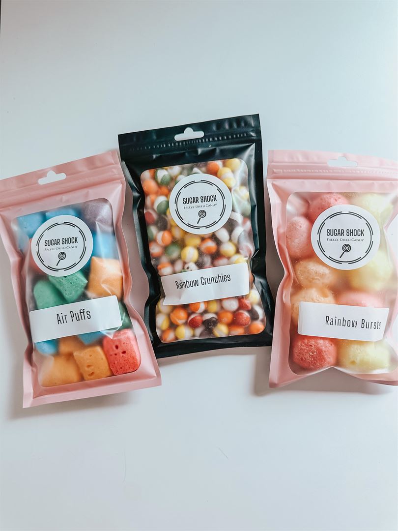 We bring a variety of freeze dried treats, including Many different types of candy, ice cream sandwiches, fruits, and vegetables.