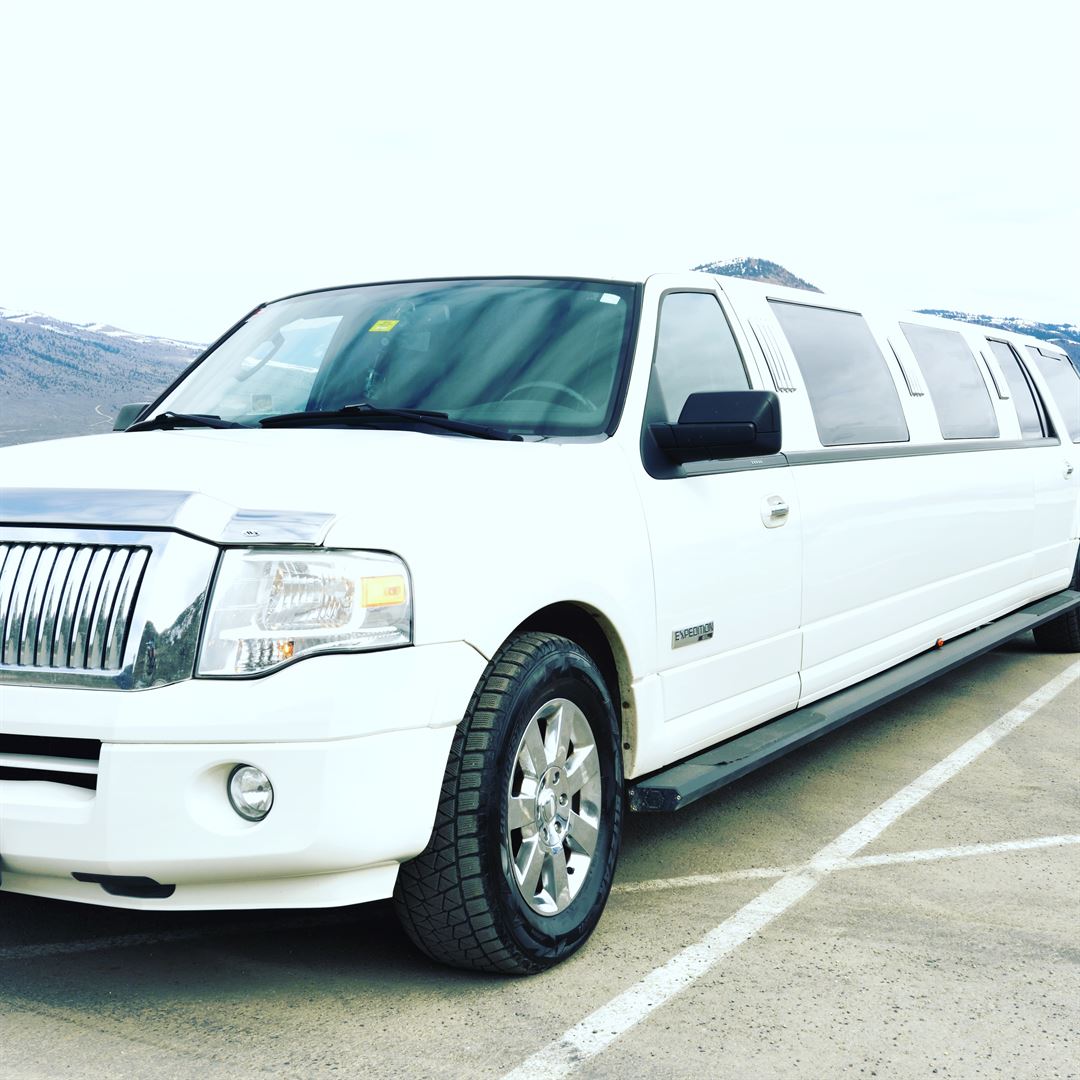 Proud to be your NEW choice in luxury transportation for Kamloops and area. Our white Expedition super stretch limousine seats 11 passengers. Request your quote today!