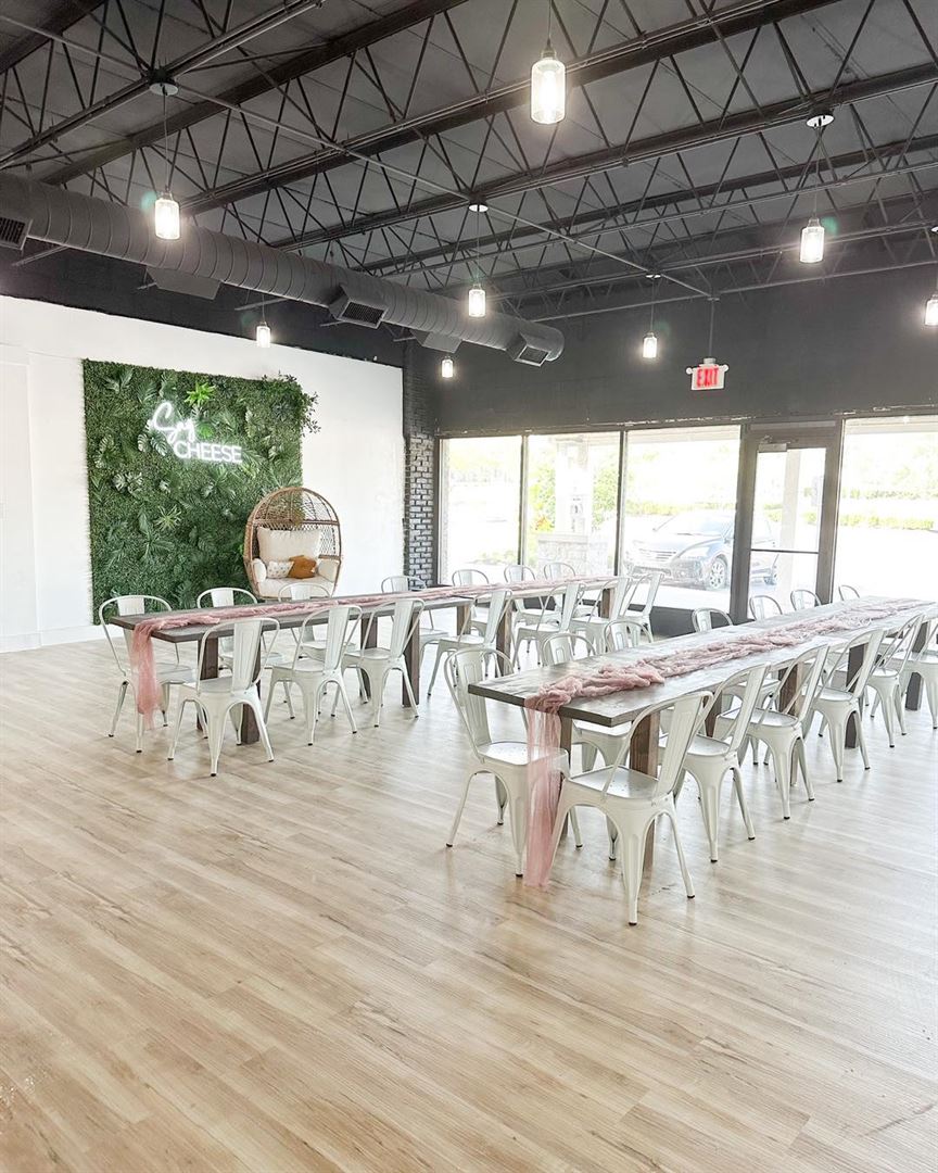 The space was perfect for 50 people. We moved some tables and stacked chairs so there was plenty of space to stand and talk, yet plenty of places to sit too. I would suggest scheduling more than half an hour for set up as we ran out of time before guest arrived. There is a great spot to decorate for taking selfies and group pictures (see photo). A few games were provided which came in handy for entertaining elementary age children.