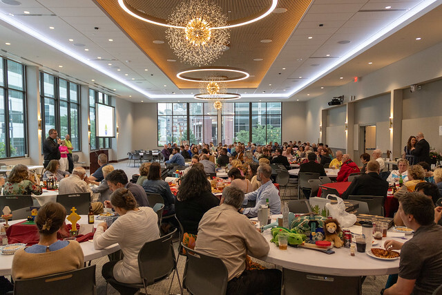 The Bishop Hogan Center, connected to the Cathedral of the Immaculate Conception at 12th and Broadway, provides a versatile space for any occasion. It comfortably seats 250 for a wedding setup or 320 in a presentation-style arrangement. The venue features Donnelly Hall, along with a connected gathering space—perfect for cocktail hours or pre-function events. Whether hosting a reception, meeting, or celebration, this space offers everything you need for a successful event.