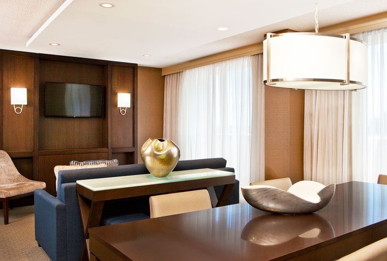 The Sheraton Suites Country Club Plaza is located directly on the famous Country Club Plaza, which features entertainment and over 180 fine shops and restaurants. Plus, after a long day of shopping, touring one of the nearby attractions, or conducting meetings, you can take advantage of our indoor and outdoor heated pools, indoor whirlpool, or you can stop by the Gallery Lounge for an afternoon cocktail. Enjoy our newly renovated guestrooms and convenient Link@Sheraton Internet hub conveniently located on the lobby level of the hotel. From bathing suits to business suites, the Sheraton has an offer for you.