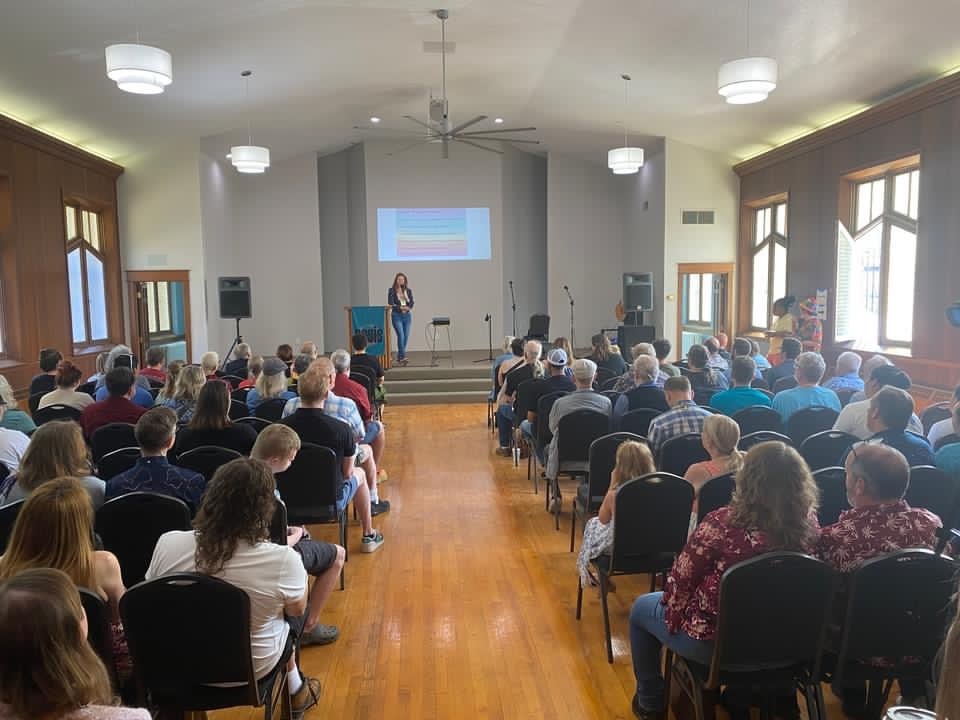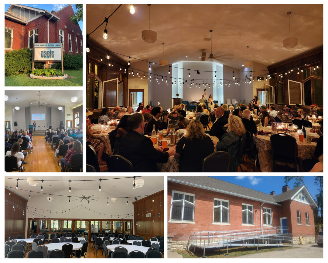 KC Oasis is a former church building. There are two large rooms, a stage, a dressing room, kitchen, handicap ramp and accessible bathroom. Small parking lot, but lots of street parking, with parking garage one block away.