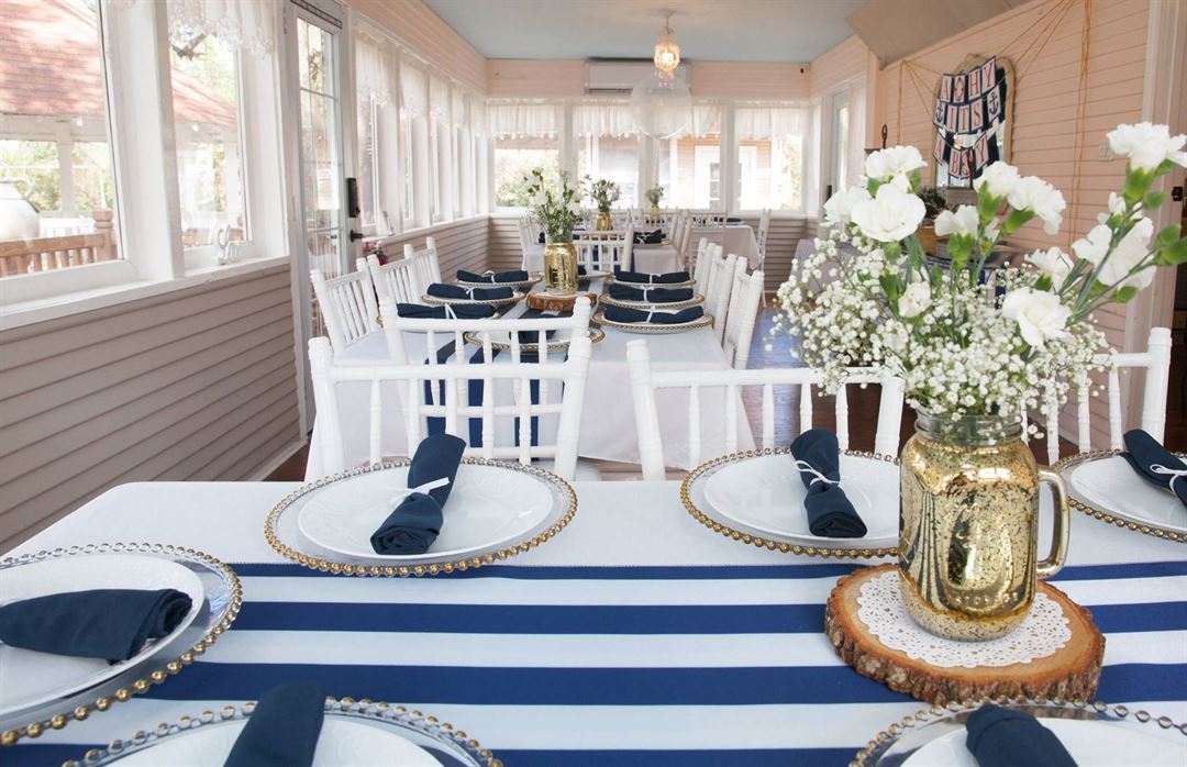 The Cottage Charm is an indoor/outdoor venue. It boasts a unique 1905 historical country cottage, a tent area, a commercial kitchen, and a bridal suite. Cottage Charm is located in the heart of Old Katy, Texas and sits on ½ acre completely shaded by 100-year-old trees.
