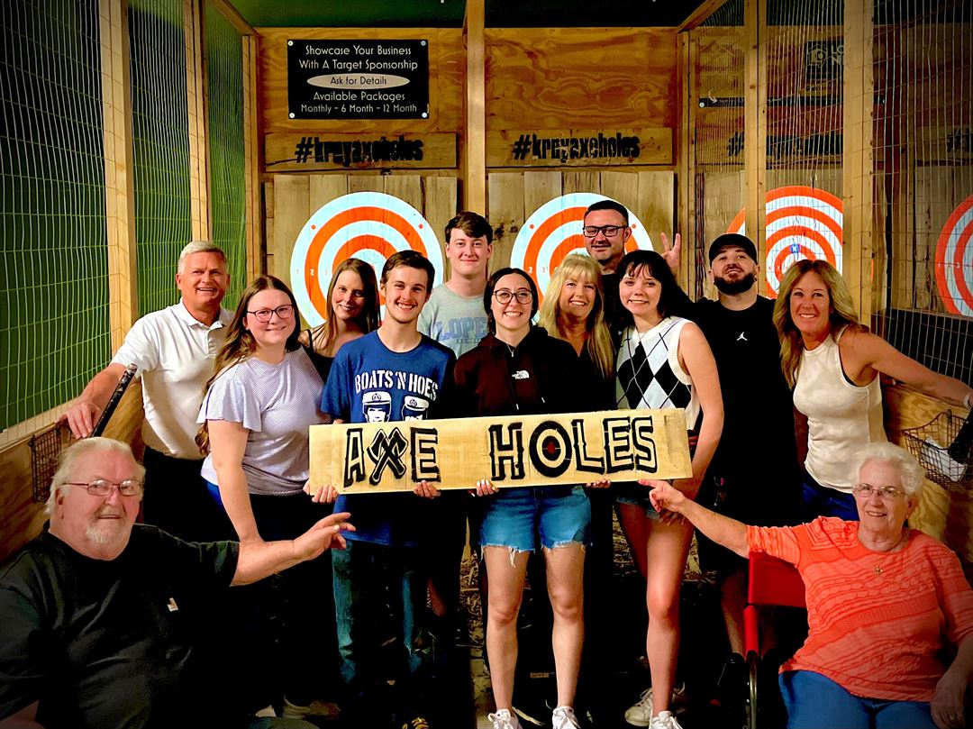 Axe Holes Kearney is a great place to visit and hang out with family and friends! You can also host your birthday party, team building event or work party here as well! We also have a great selection of drinks including, craft and domestic beer, sodas, teas and more! If you are looking for fun things to do in Kearney Nebraska, Axe Holes is the place to be!