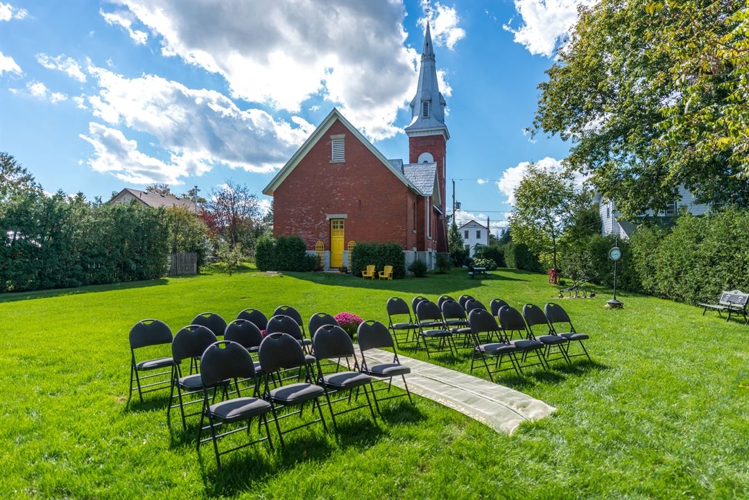 Ottawa Wedding Chapel offers a storybook setting of country charm and sophisticated elegance. The non-denominational chapel features stunning stained glass, beautifully refinished wood, fantastic acoustics, and air-conditioning. It accommodates up to 100 guests in the pews, and 50 guests in the overflow seating. This space can accommodate up to 65 guests for a cocktail reception. There are beautiful gardens behind the chapel for photo opportunities. It is located 30 minutes from downtown Ottawa.