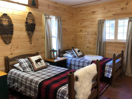 Staying in the great outdoors doesn’t mean roughing it! Guests stay in comfortable rustic chic country cabins overlooking our beautiful lake and mountains. Heating, air conditioning, private bathrooms, and daily housekeeping services all included!