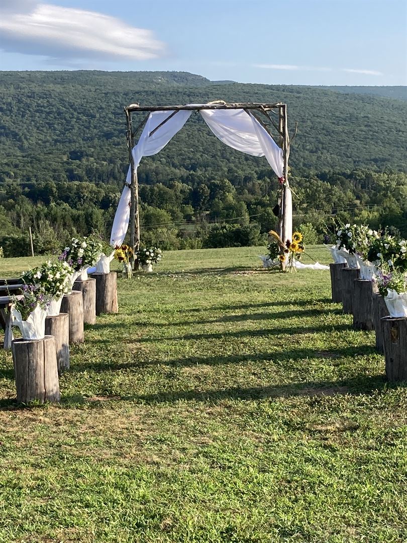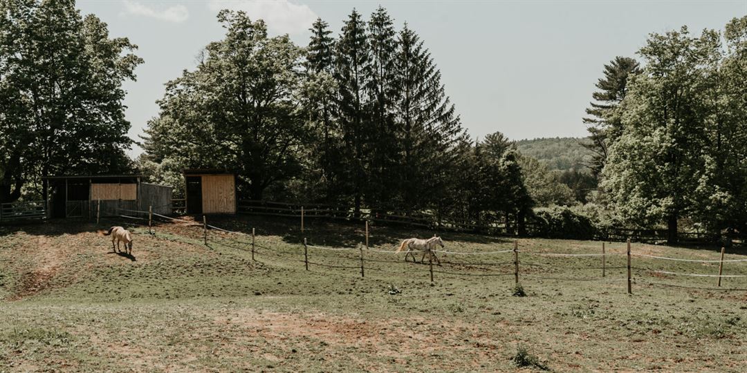 Come get married on a horse farm! You and your guests will never forget it. Speak to the couples who have been married on our special farm and who have danced the night away under the glowing paper lanterns in the covered, weather-proof pavilion. It’s a magical experience with stunning 360 degree mountain views, grazing horses and curious Guinea hens! Summer / Fall.