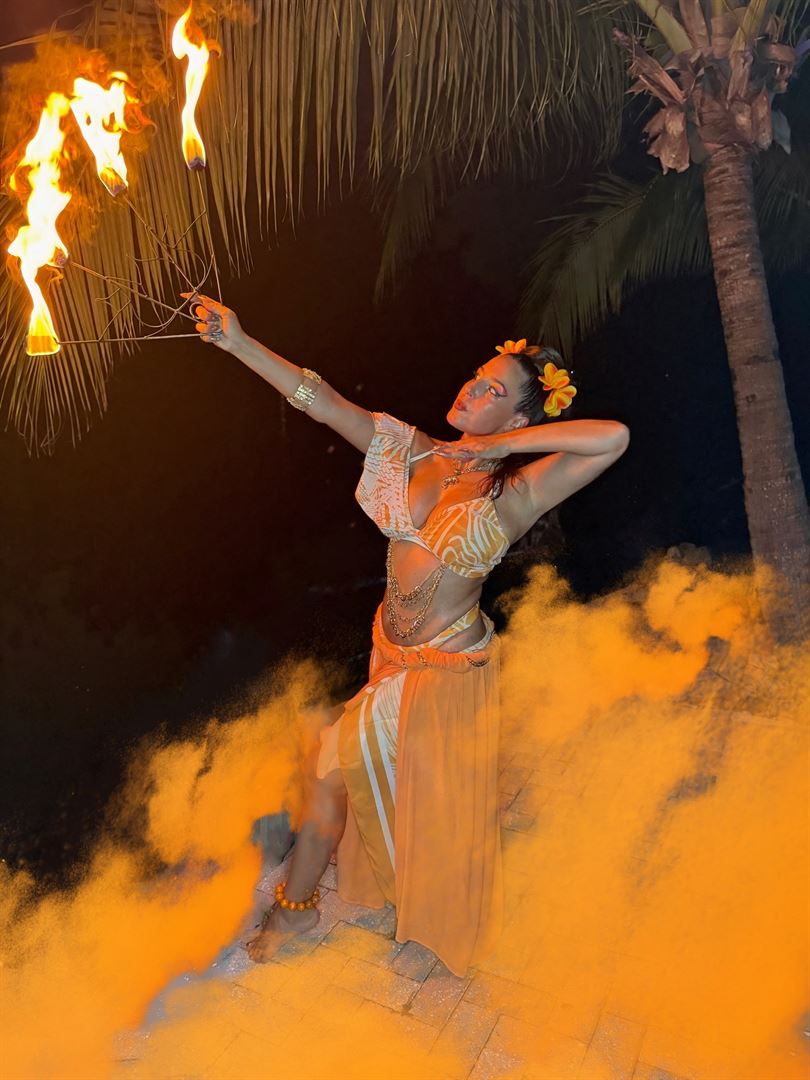 Hire Florida Keys Elegant Fire Breather for your destination wedding or event in Key Largo, Islamorada, Marathon, and Key West. Islamorada Barefoot Dance offers Fire Show, Snake Charming, Bellydancing, Luau Fusion, Jasmine Character, and Reptile Birthday Parties. The full fire show includes fire breathing, fire eating, fire swords, dragon staff, fire fans, and LED wings. Traveling outside of The Florida Keys will require travel costs.