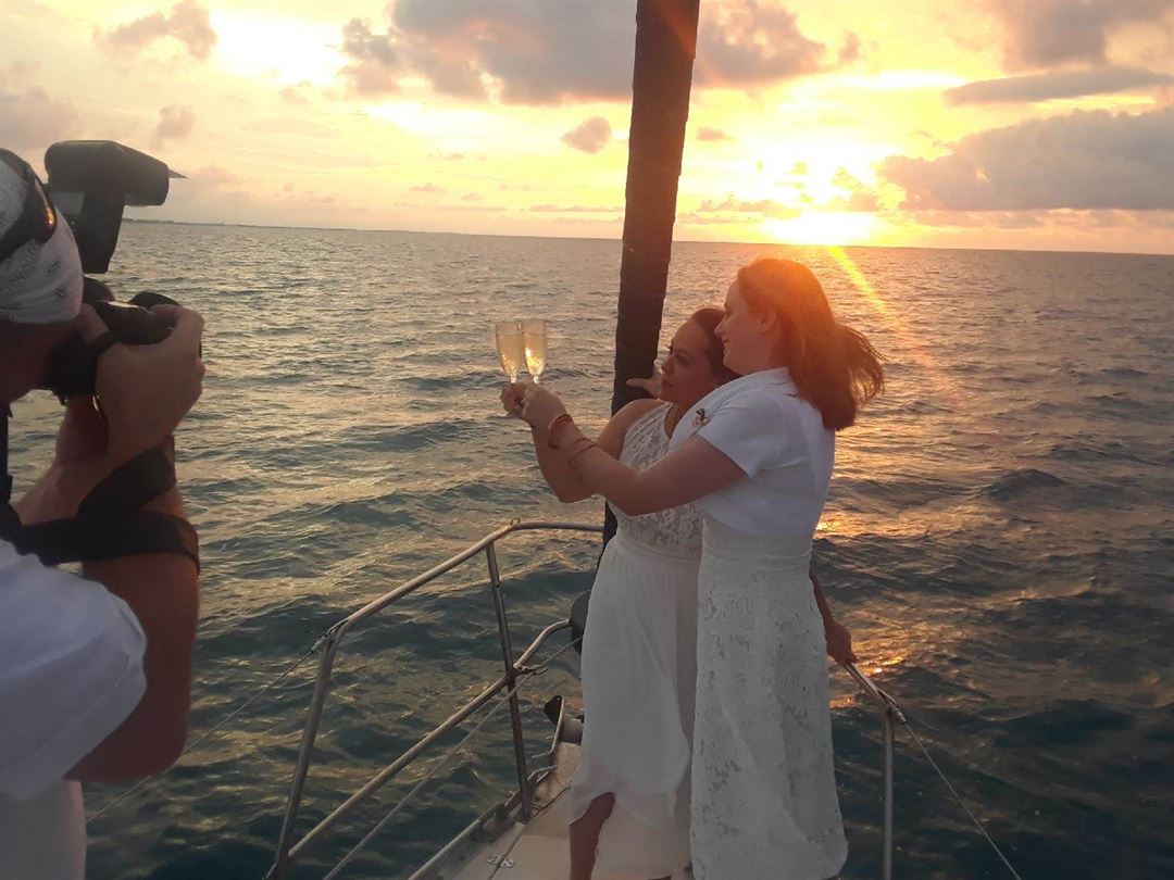 We can take the wedding couple and up to 4 additional guests (6 total) for a 2 hour sail. You can choose from just the boat on up to boat, notary, and photographer. If you prefer a daytime wedding, we can set up a half day or full day sail with lunch.