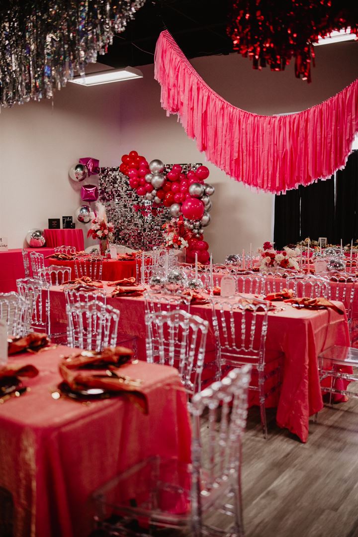 Newly remodeled space, Crystal chandeliers, high ceilings, kitchenette, ample on site parking, Wífi, wheelchair accessibility, 75“ flat screen television. Pricing includes tables, folding chairs and uplighting. Sublime management & staff.
