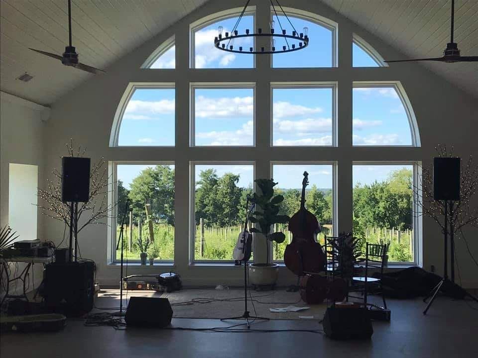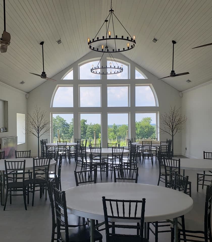The Naz is privately owned and offers intimate weddings, rehearsal dinners, receptions, parties and events of any kind. The event room is located within the winery facility but has a separate entrance. The room measures 50’ x 25’, has large windows, a cathedral ceiling, round chandeliers and a paver patio just outside. It also has a separate entrance from the tasting room bar.