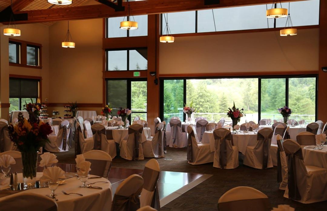 Located just 4 miles from the Kingston ferry terminal and 17 miles from the Bainbridge Island ferry terminal, making it easily accessible from the Seattle area. Picture windows from our clubhouse offer spectacular views of the golf course, while providing 2,000 square feet of indoor space to accommodate 150 guests. For outdoor events, our lawn can accommodate up to 150 guests.