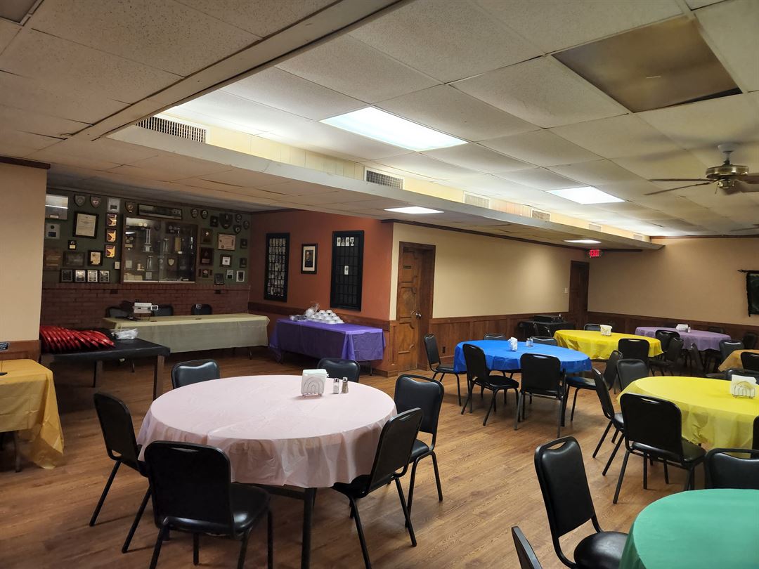 Our Large hall has a total occupancy for 352 people. It has Standard seating for 240 people. It also has a stage and Separate heating/air conditioning from the rest of the building. There is Plenty of room for a dance, as well as rectangular tables that and round tables as an available option.