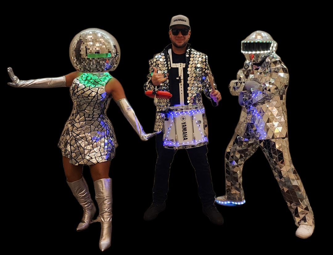 Drummer Show to provide live entertainment for an Hora Loca. Great to give your guest that "WOW' factor. Definitley a great way to have them on their feet dancing all night. Kenny Kings will perform with any DJ you have booked for your event. You may also add on additional entertainment we have like Led Stilt Robot, Led female dancers, mirror man and more.