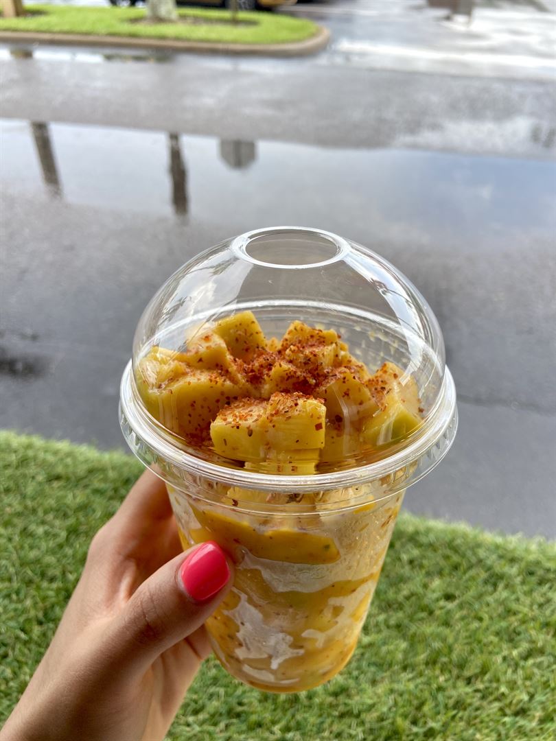 We specialize in natural and organic fruit smoothies, also delicious milkshakes and fresh cut chunk of mango with different toppings. Also coconut water from the coconut
