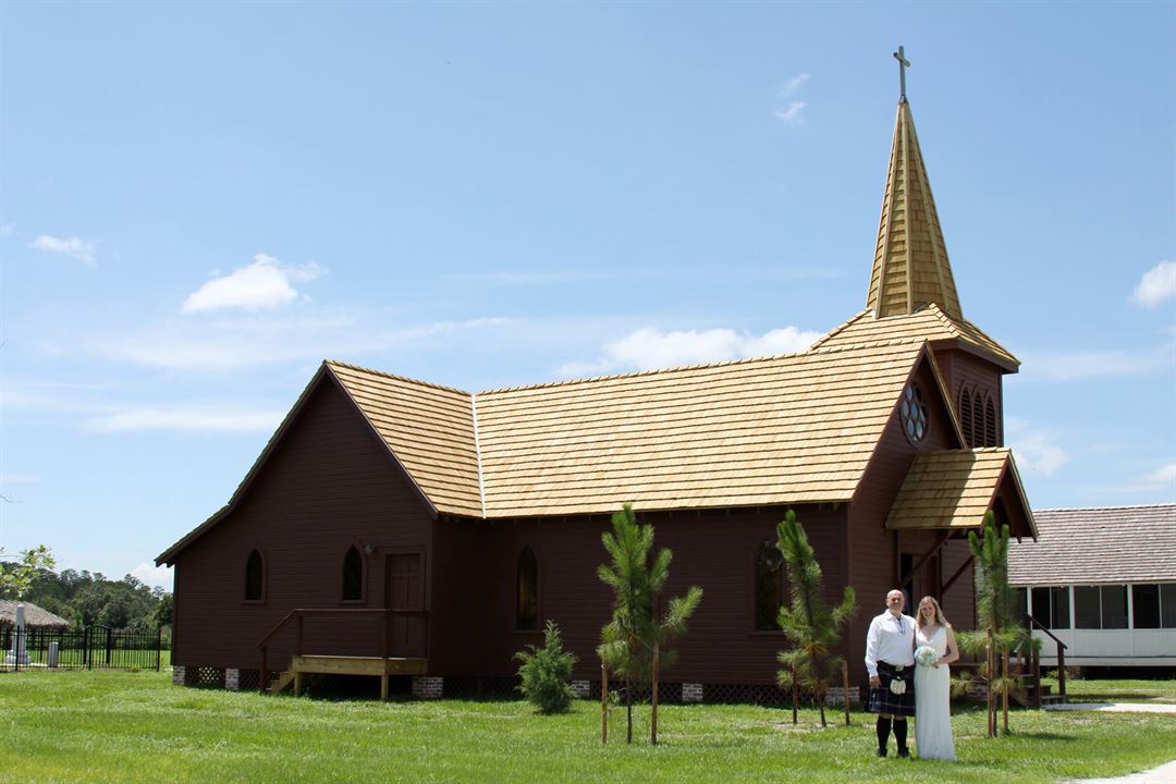 Osceola History offers a charming, rustic, and historic wedding venue located in Kissimmee, Florida. The Pioneer Village at Shingle Creek is located on 10 acres of open land; the space and amenities can accommodate events from five guests to more than 1,000. This vintage, country, and shabby-chic setting lends itself well to traditional Southern weddings. Osceola History has no restrictions on vendors or outside items.