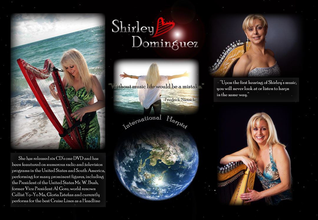 As a featured entertainer an a prolific composer Shirley ,combines high energy numbers with engaging performance skills , lively ethnic rhythms covering the cultural spectrum from Greek, Italian, New Flamenco and Pop to her own Latin roots, bringing the Harp to the Center Stage .