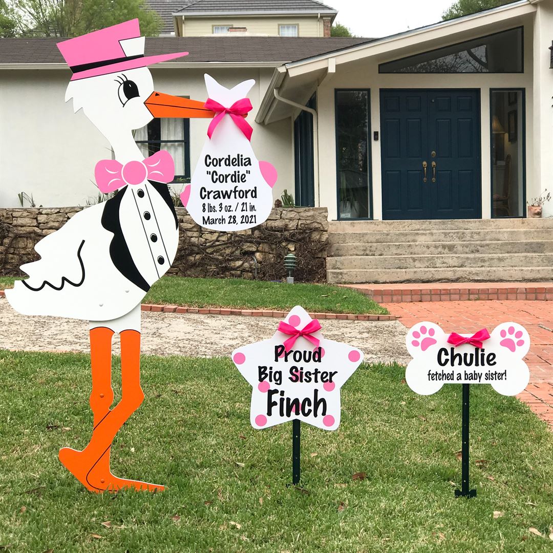 Our classic pink & blue stork signs are an adorable way to announce the arrival of your new baby! Standing at six feet tall, our signs make the perfect welcome home gift to help celebrate your bundle of joy. We deliver storks to most communities within this area, including Bearden, Bluegrass, Cedar Bluff, Farragut, Fountain City, Hardin Valley, Karns, Maryville, Riverbend, Rocky Hill, Sequoyah Hills, Westmoreland, West Hills, and more.