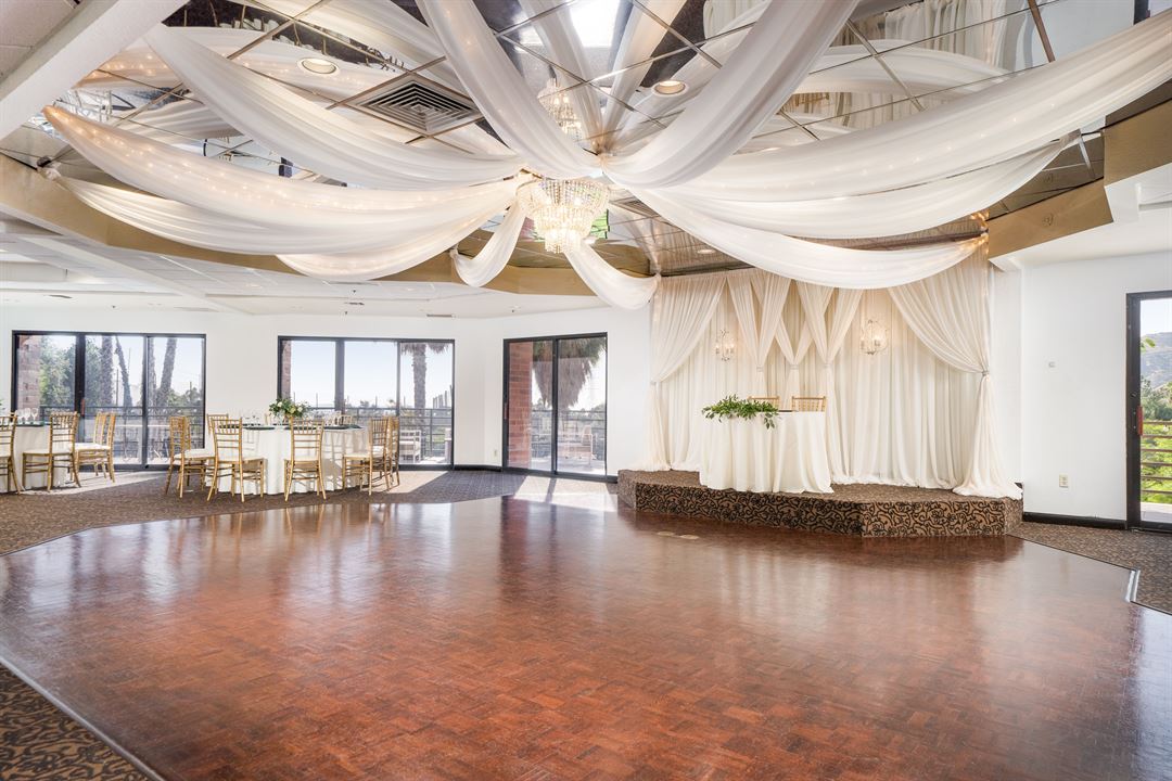As you enter through the grand wooden door, you'll be greeted by a lush, hedge-lined ceremony site crowned with a graceful white arbor and enchanting bistro lights. Sierra La Verne by Wedgewood Weddings offers two spacious ballrooms, each featuring breathtaking views and unique amenities to suit your event needs.