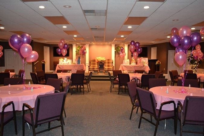 Equipped with full sound system, 4 flat screen LED TVs and microphone setup, this meeting space is perfect for multimedia presentations. Show slideshows of loved ones at a memorial reception, anniversary party, wedding, reunion, etc. Sit back and relax in our air-conditioned facility while enjoying a lunch or dinner provided by your caterer.