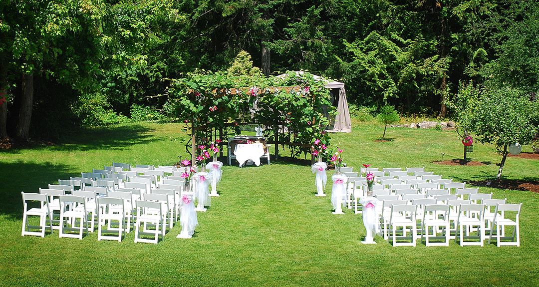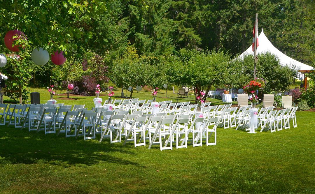 Noisy Acres Garden Estates is located in the beautiful Yellow Point area which is between Nanaimo and Ladysmith on Vancouver Island. Having hosted gatherings, of all sizes, including birthday parties, celebrations of life, corporate events, family reunions, mini weddings, and classic weddings, you can rest easy knowing that you are in experienced hands –let us take care of the details while you just focus on your special day!