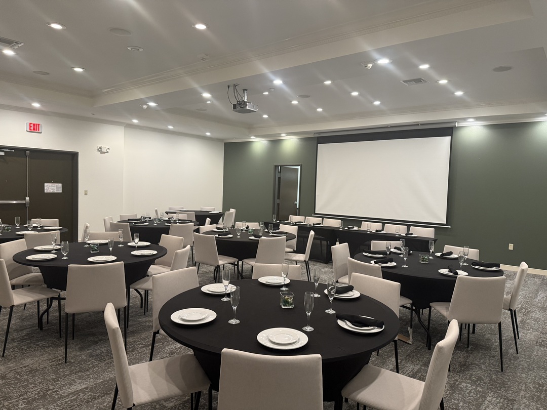 Step into our newly renovated 2,400 square-foot meeting space, perfectly tailored for any occasion. With seating for up to 200 guests, this versatile venue is equipped with state-of-the-art audio-visual technology, setting the stage for unforgettable experiences — from weddings and corporate meetings to family reunions, legal gatherings, retreats, and milestone celebrations.